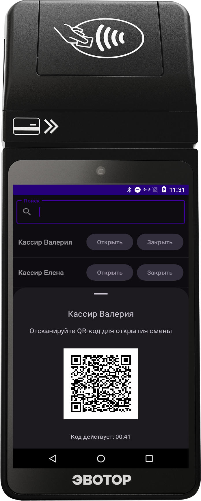 - Выбирает операцию - открыть или закрыть смену.