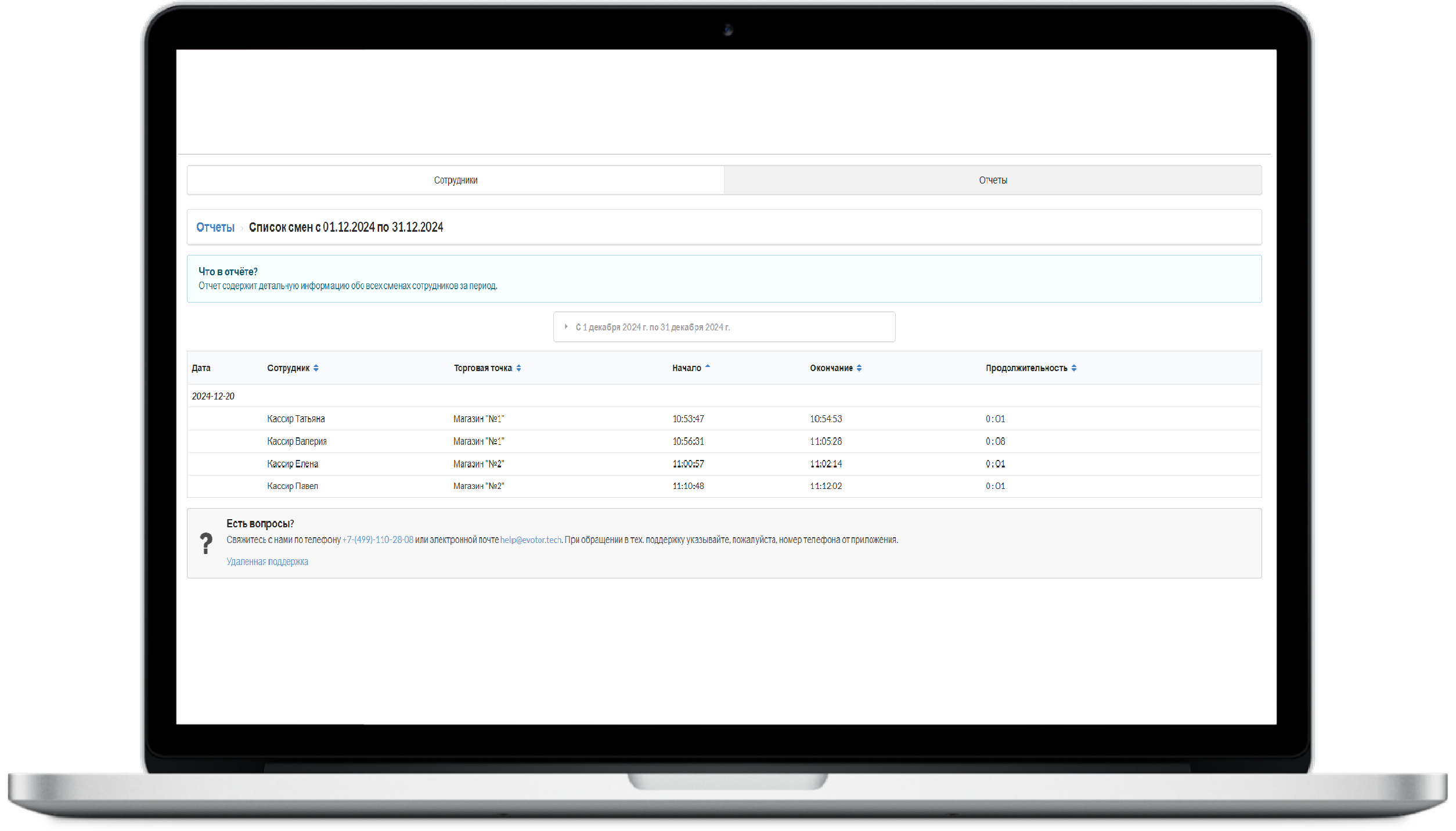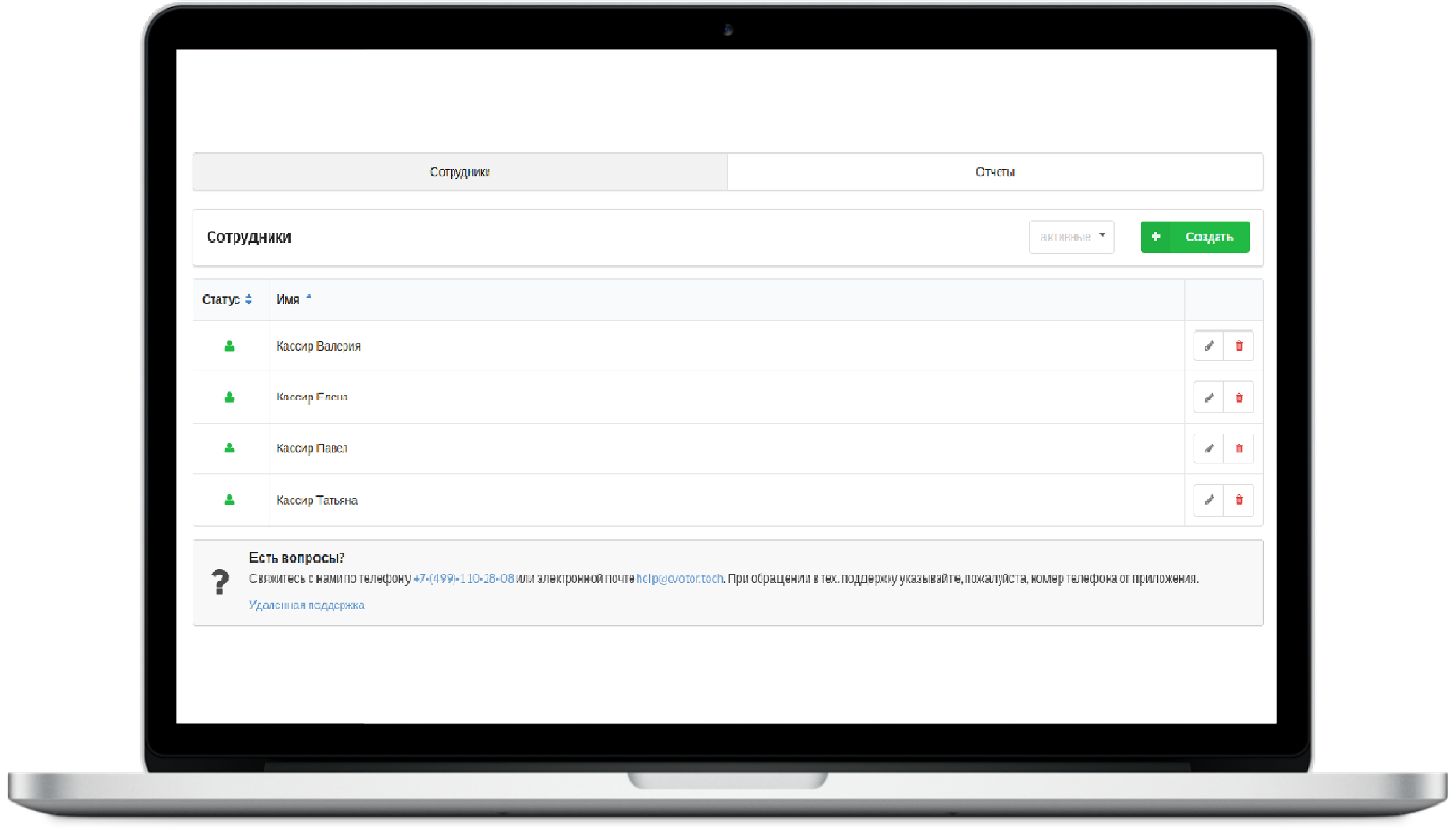 - получать актуальную информацию о сменах сотрудников;