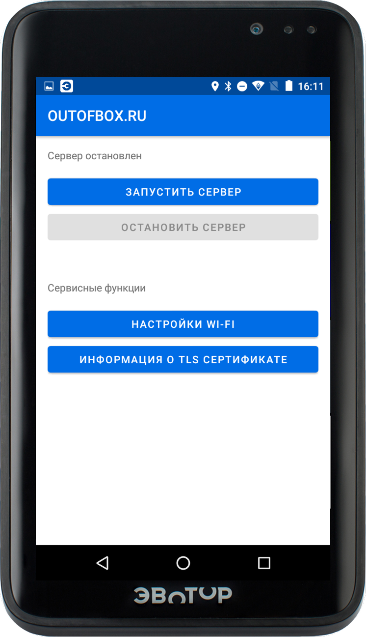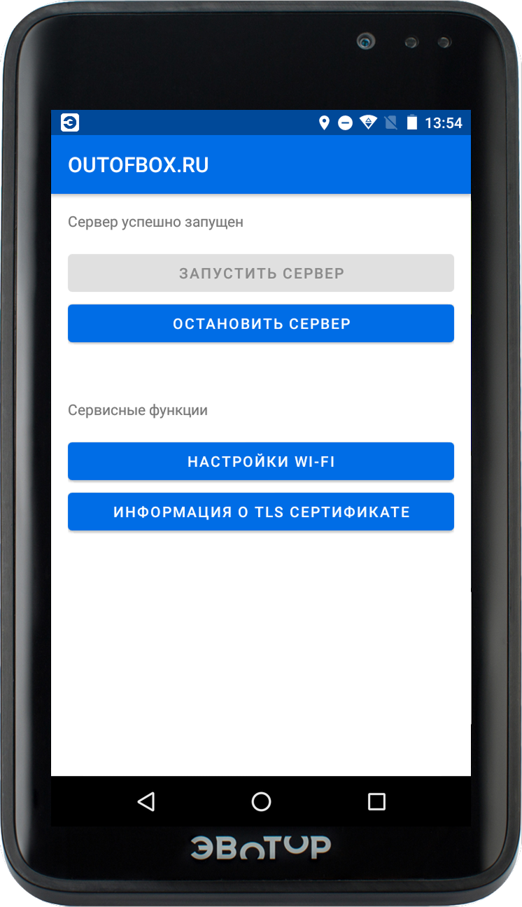 Для корректной интеграции с OUTOFBOX убедитесь, что и терминал ЭВОТОР и приложение находятся в одной сети.